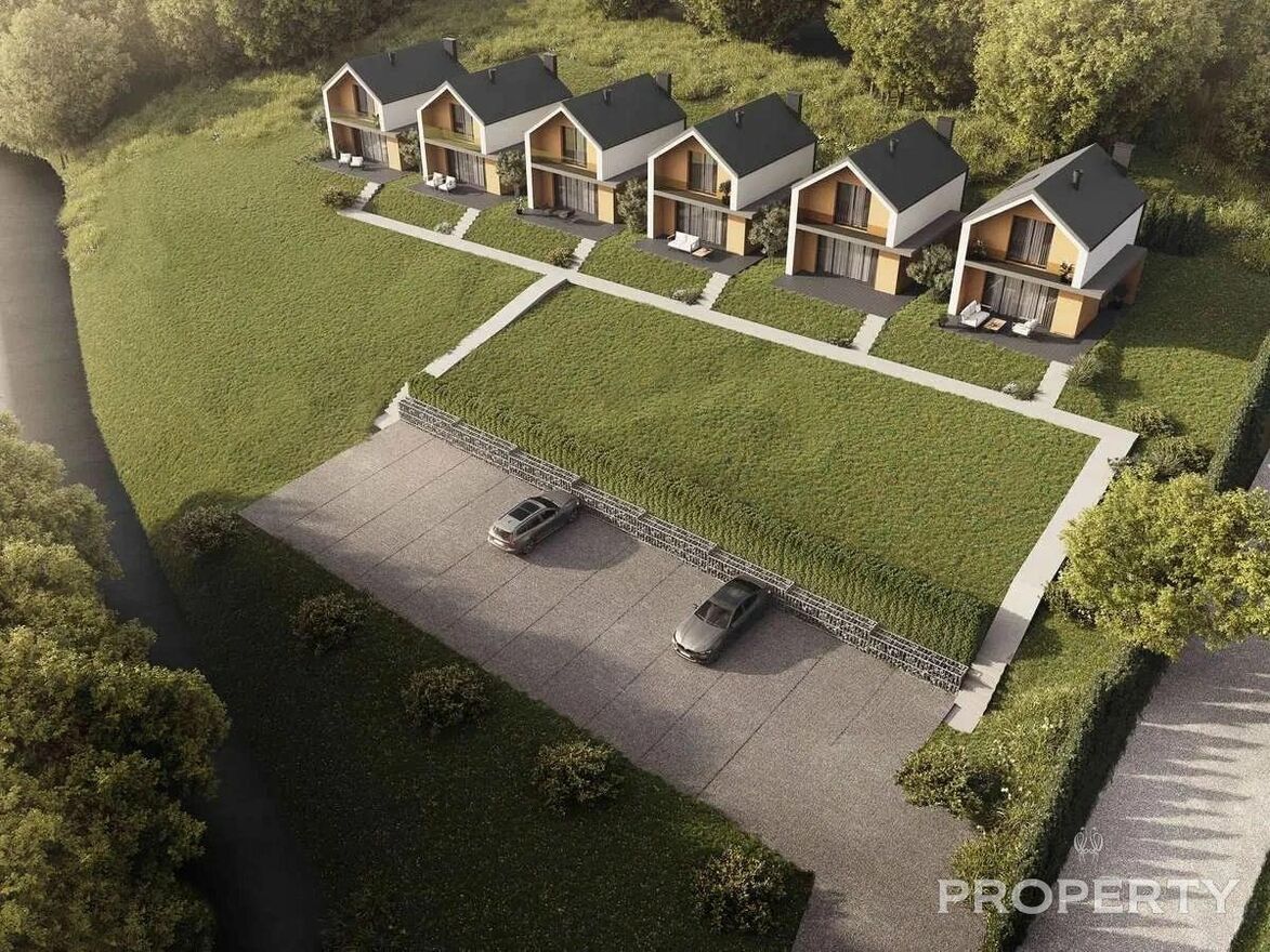 Do każdego domu przynależą 2 miejsca postojowe . Nieruchomości wyposażone są w prąd, wodę oraz indywidualną przydomową oczyszczalnię.